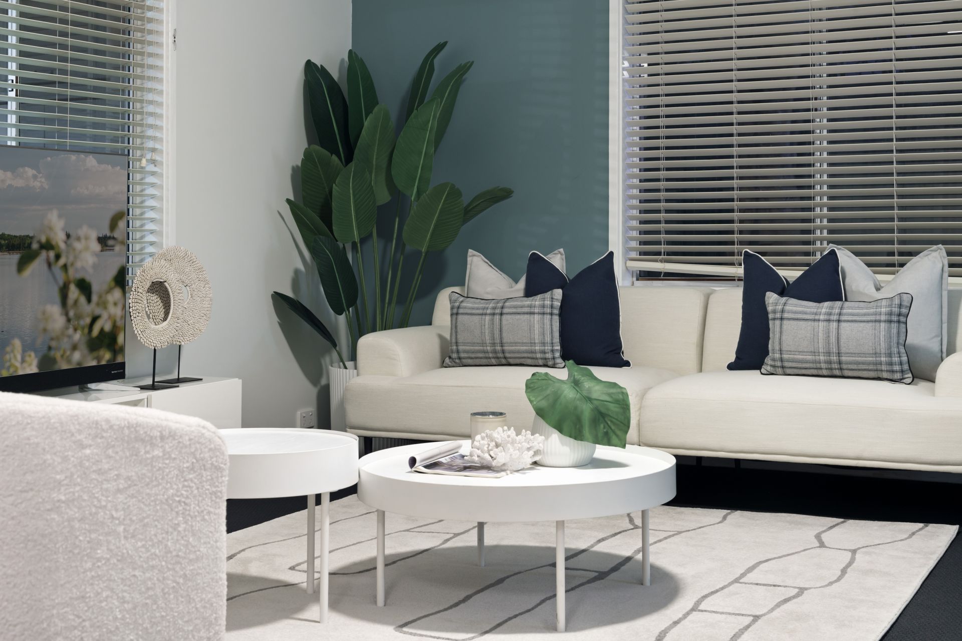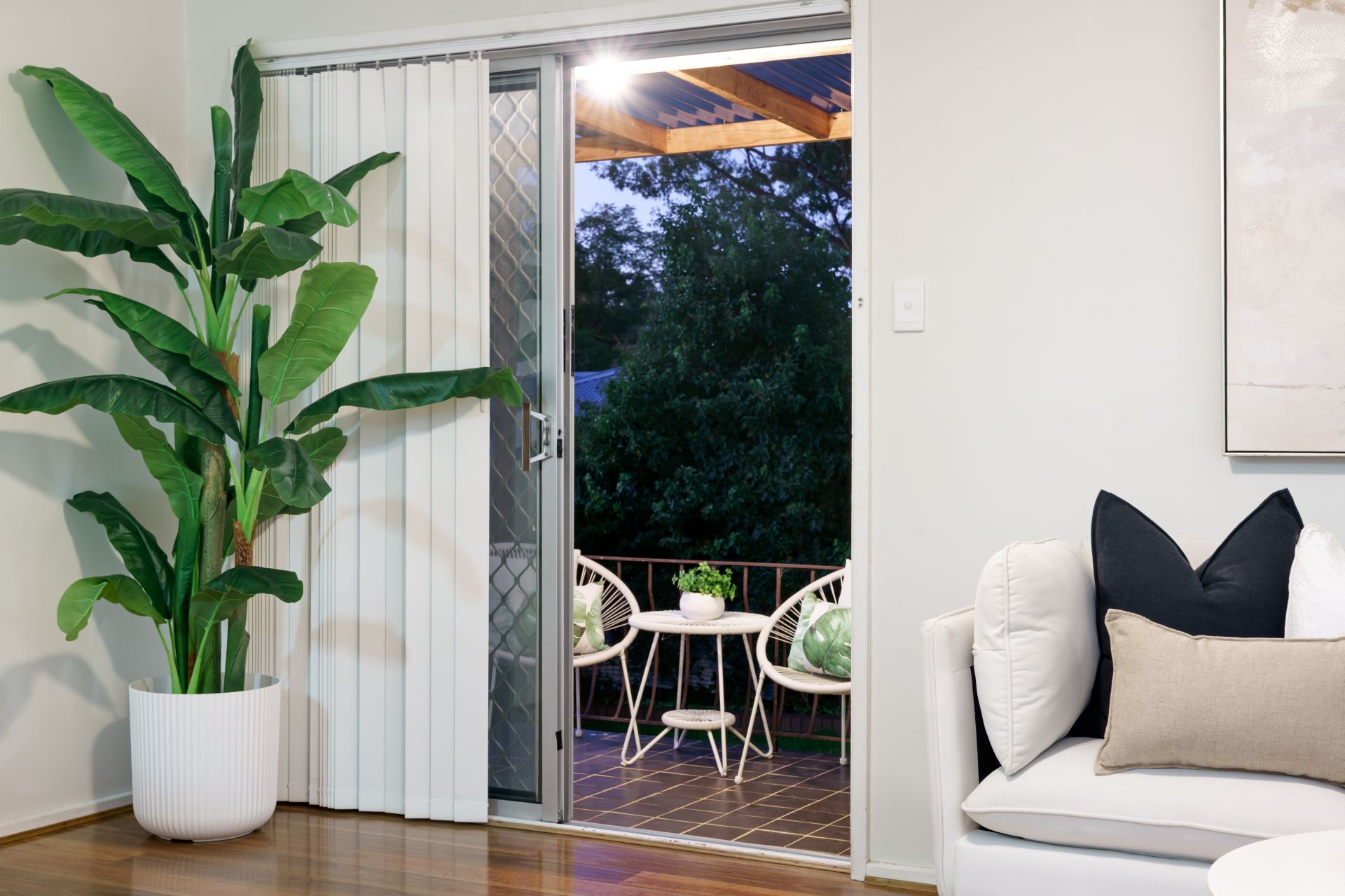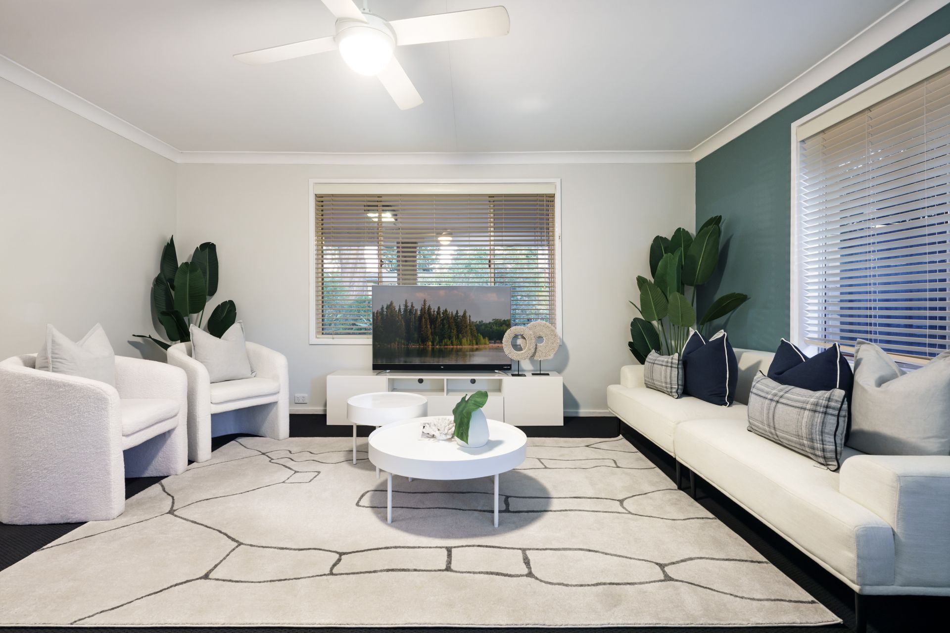 - Three bedrooms with robes and fans; tiled bathroom with shower and tub