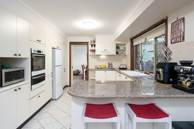 - Granite kitchen benchtops, gas cooking, dishwasher, double wall ovens