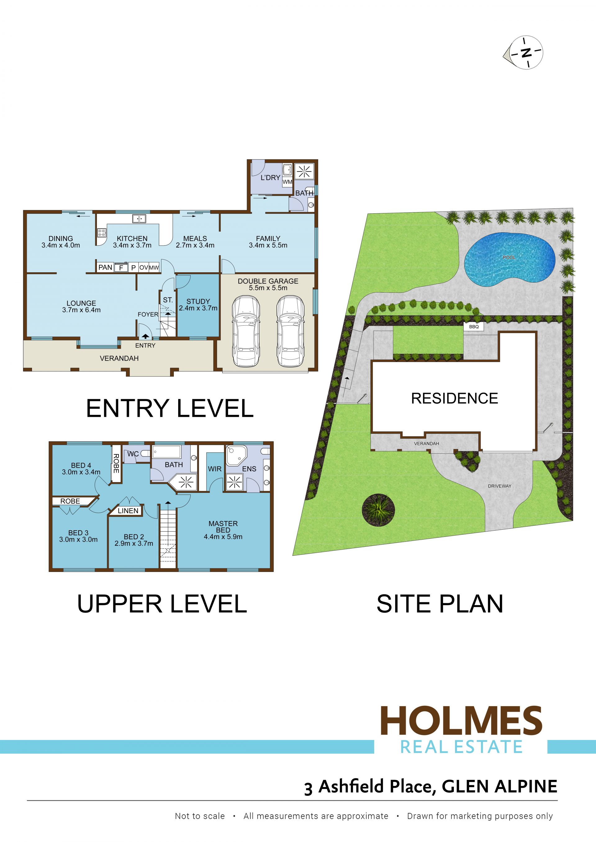 - Quality master quarters with corner tub in ensuite; robes + fans throughout