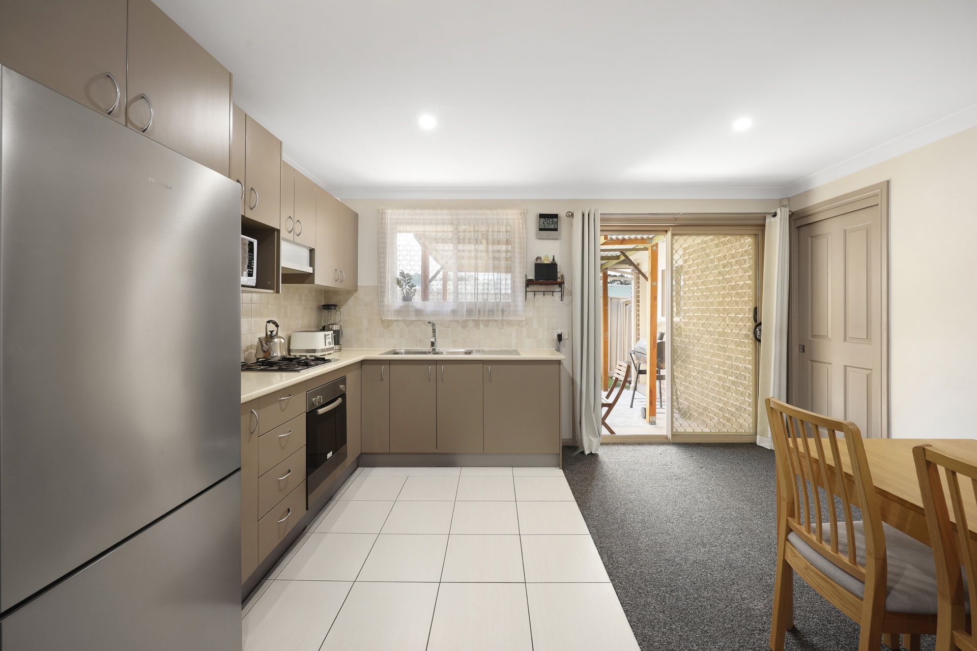 - Modern kitchen with stainless steel appliances, 600mm gas cooktop and plenty of overhead cupboards