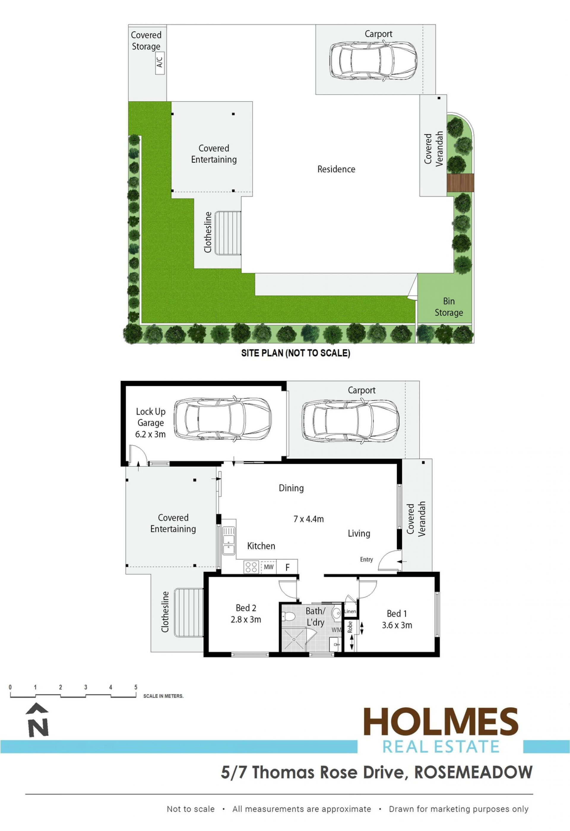 - Single lock up garage with automatic roller door opener plus carport